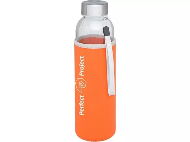 Стеклянная бутылка с одинарными стенками и съемной крышкой. На крышке есть ремешок для легкой переноски, кроме того имеется чехол из неопрена. Рекомендуется использовать для холодных напитков. Не замораживать, не разогревать в микроволновой печи. Объем 500 мл. Уложена в подарочную коробку.