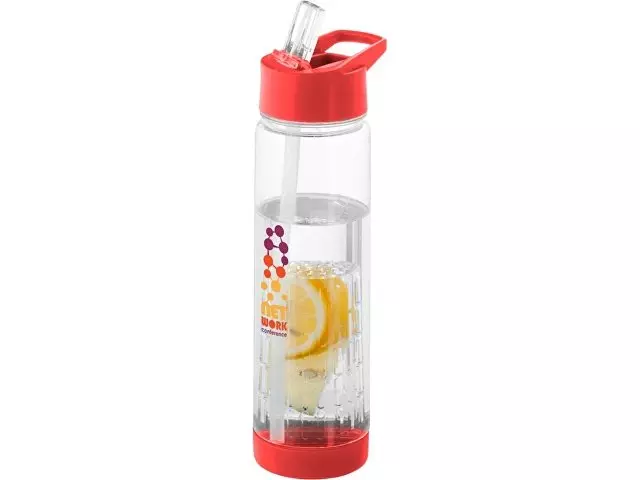 Оригинальная бутылка для воды. Благодаря отделению для фруктов есть возможность создания лимонада на свой вкус. Придется по вкусу любителям натуральных продуктов и здорового образа жизни. Легко разбирается. На пластиковый корпус возможно нанесение тампопечати. Объем – 740 мл.