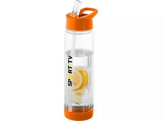 Оригинальная бутылка для воды. Благодаря отделению для фруктов есть возможность создания лимонада на свой вкус. Придется по вкусу любителям натуральных продуктов и здорового образа жизни. Легко разбирается. На пластиковый корпус возможно нанесение тампопечати. Объем – 740 мл.
