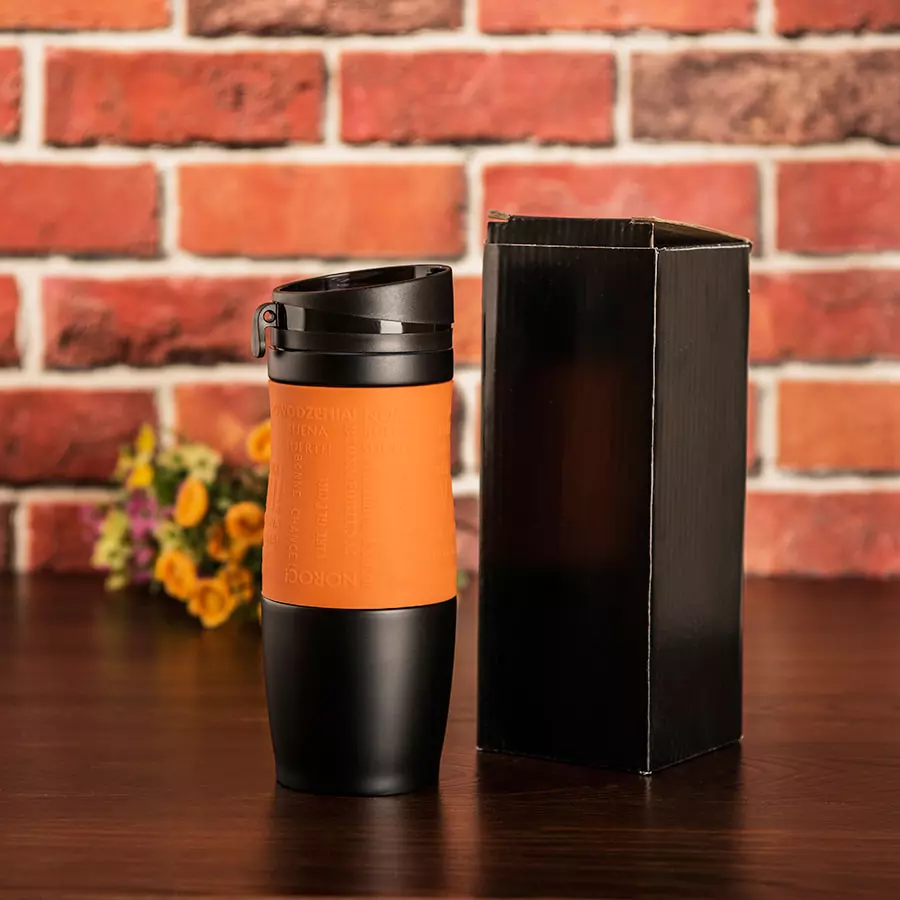 Термокружка вакуумная "УДАЧА", 400 мл, красный, металл/силикон