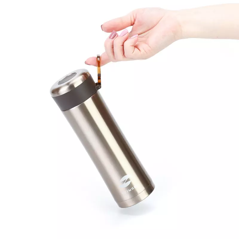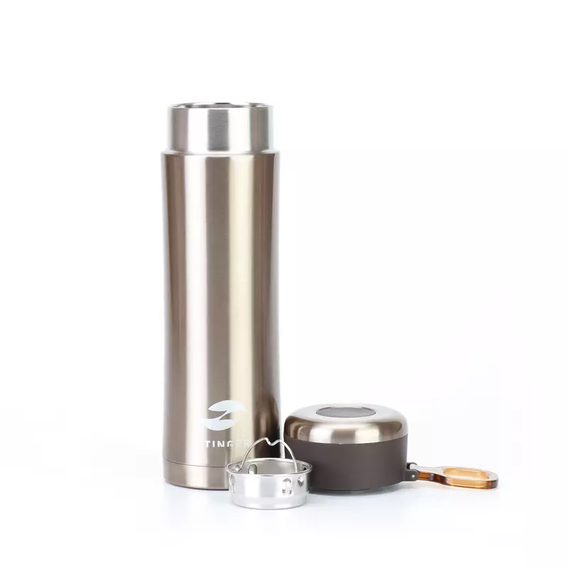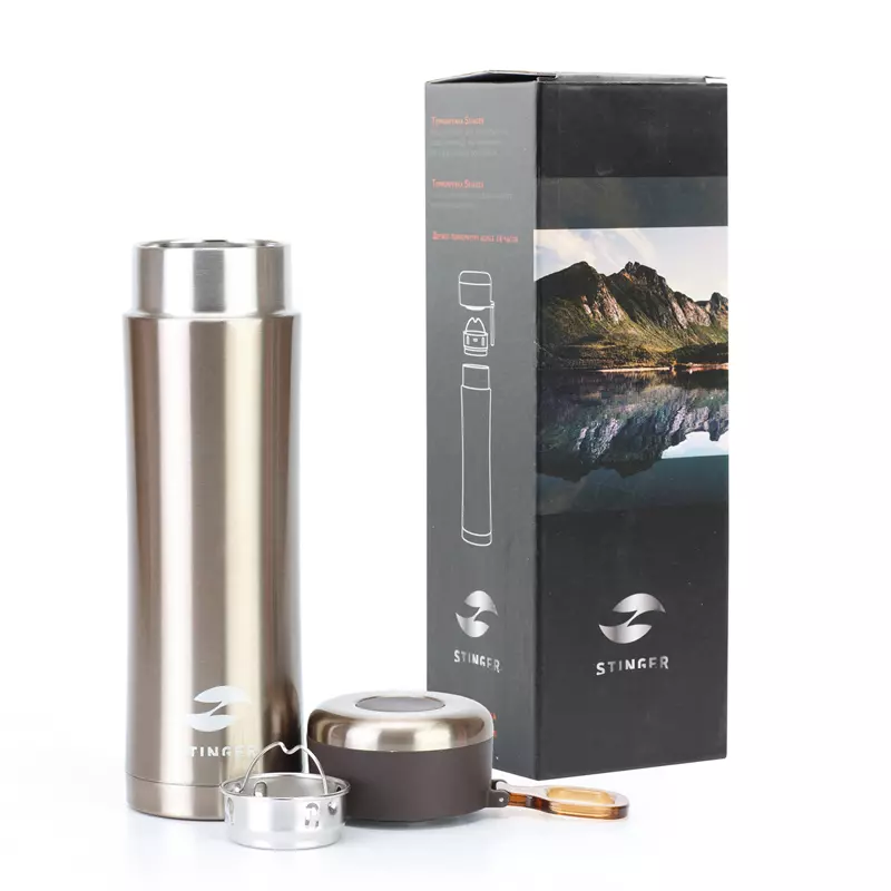 Термокружка Stinger, 0,42 л, сталь/пластик, золотой матовый, с ситечком, 7,5 х 6,9 х 22,2 см