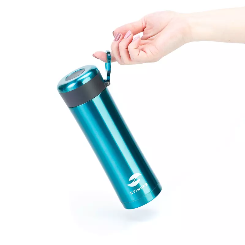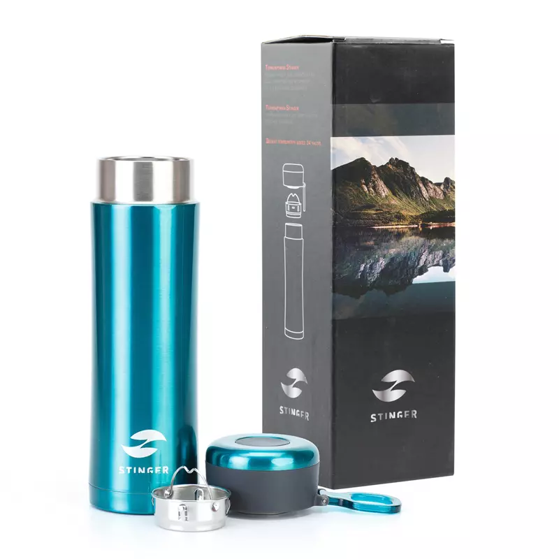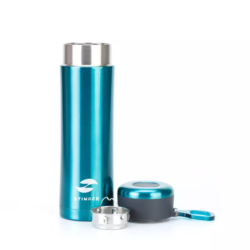 Термокружка Stinger, 0,42 л, сталь/пластик, изумрудный матовый, с ситечком, 7,5 х 6,9 х 22,2 см