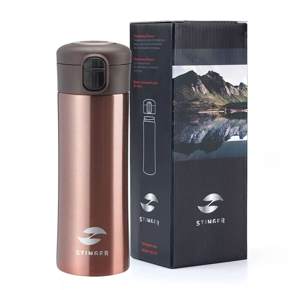 Термокружка Stinger, 0,35 л, сталь/пластик, розовое золото глянцевый, 8,4 x 7 x 21,2 см