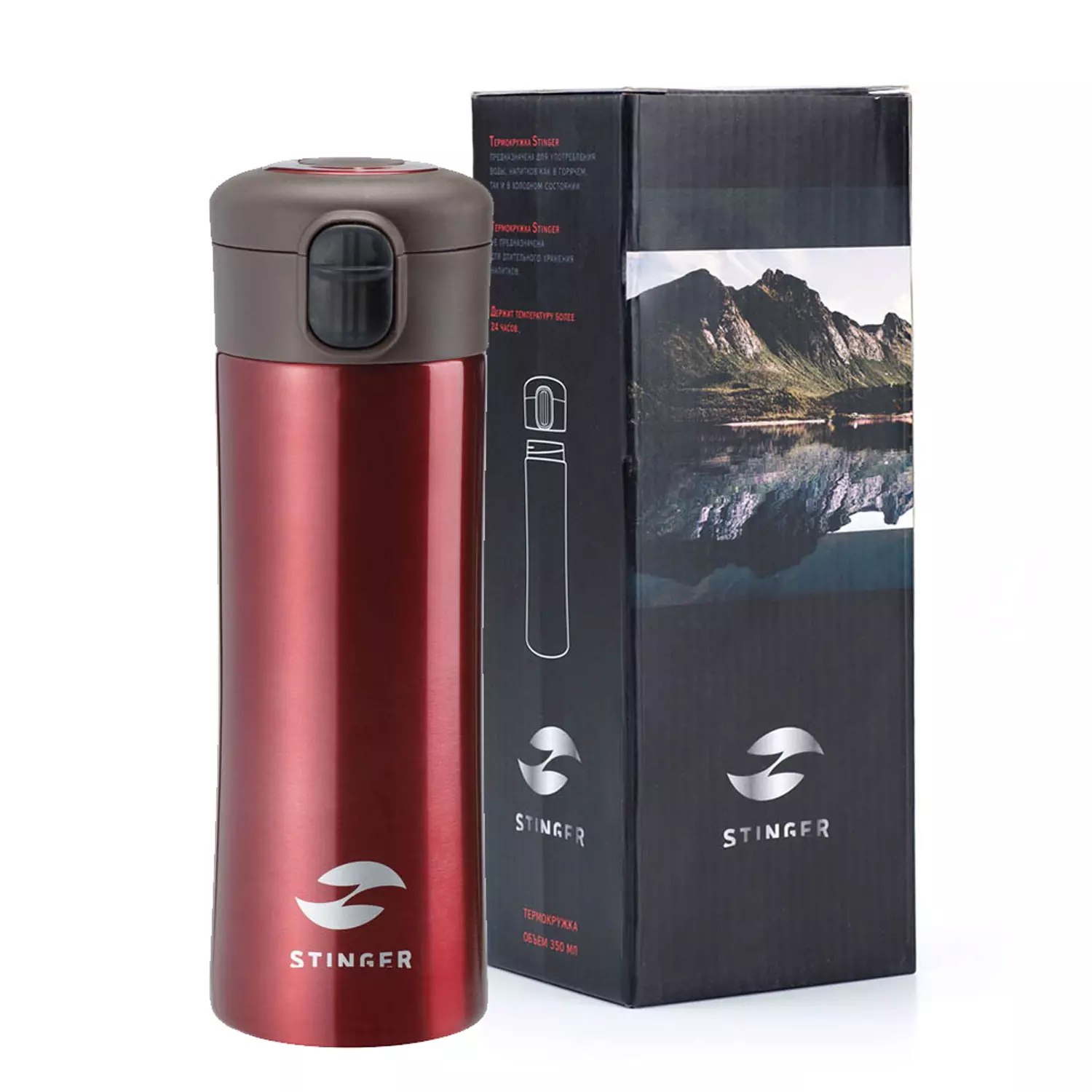 Термокружка Stinger, 0,35 л, сталь/пластик, красный глянцевый, 8,4 x 7 x 21,2 см