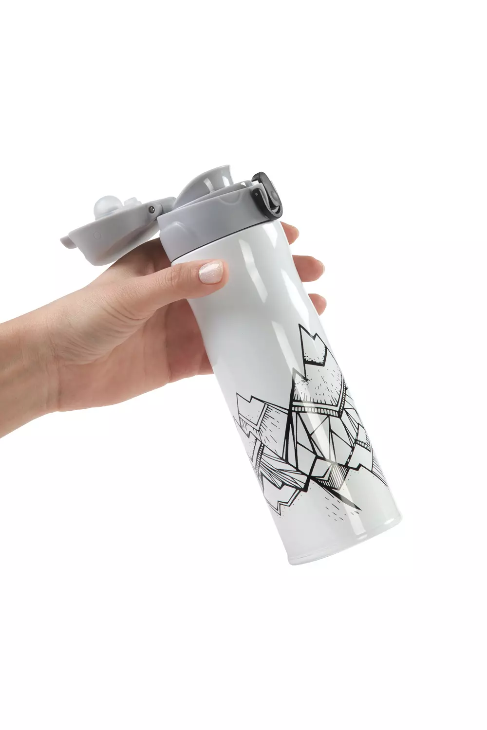 Термокружка Stinger, 0,42 л, сталь/пластик, белый с принтом, 7,4 x 6,7 x 22,4 см