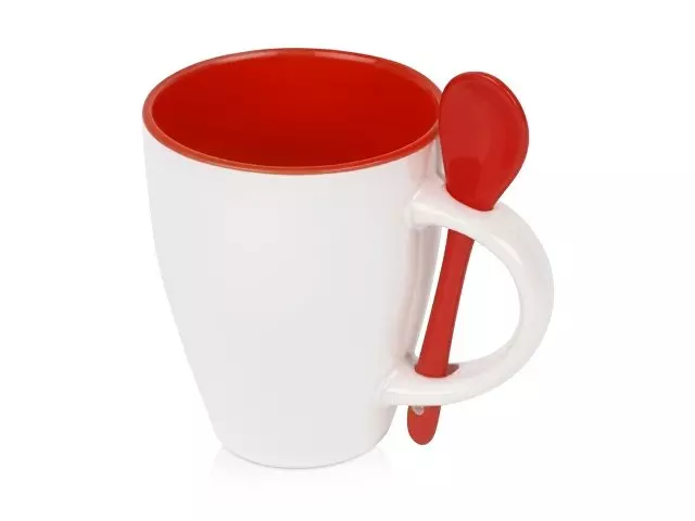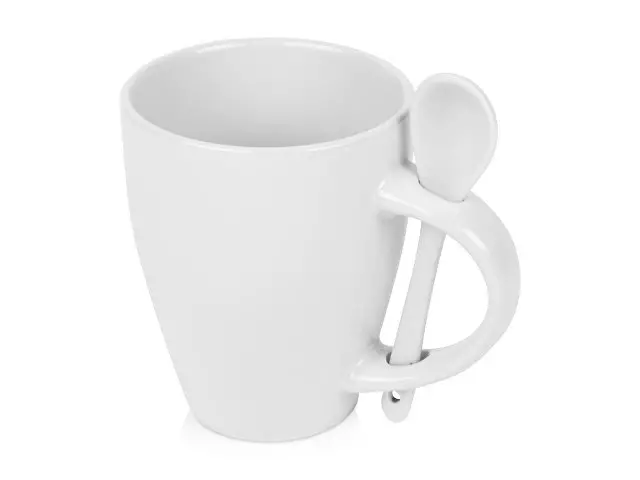 Стильная кружка на 320 мл с ложкой выполнены в контрастном сочетании цветов. Оригинальная форма ручки кружки позволяет крепить в ней ложку. Замечательный подарок для коллег по работе.