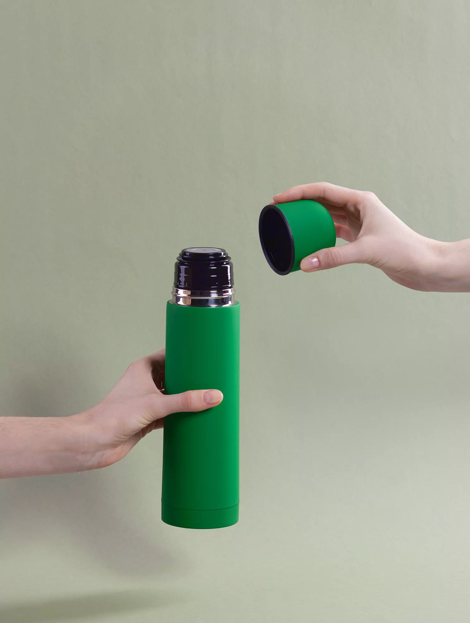 Емкость 0,5 л Термос "Крит" - это идеальная форма, сочные цвета, универсальный размер, объем, уникальное прорезиненное напыление soft-touch.Термос  изготовлен из пищевой стали с двойными стенками и вакуумной термоизоляцией.Возможность гравировки логотипа по окружности встык сделает термос совершенно особенным и неповторимым.Кнопочный клапан открывается одним нажатием кнопки, что позволяет быстро и легко наливать жидкость из термоса. Термос "Крит" сделает путешевствие комфортным, отдых - незабываемым, а занятия спортом удобным. Внимание! Не рекомендуется мыть в посудомоечной машине. Температурные характеристики термоса. При температуре окружающей среды +20±2°С: начальная температура —  95±2 °С   через 2 часа — 75±2 °С  через 4 часа — 65±2 °С через 6 часов — 60±2 °С через 8 часов — 55±2  °С