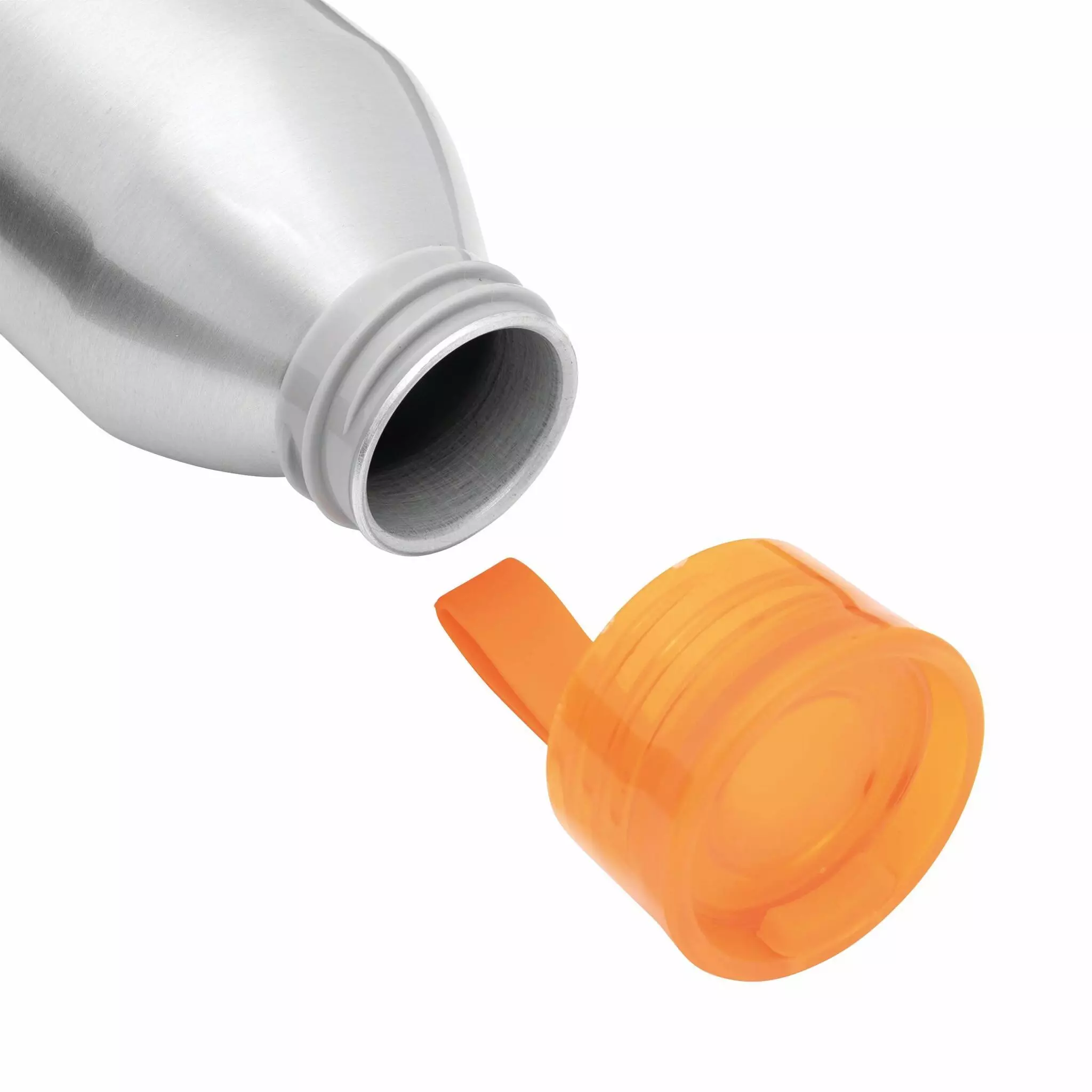 Алюминиевая бутылка COLOURED: цветная закручивающаяся пластиковая крышка, силиконовая петля на руку, объем: около 650 мл.