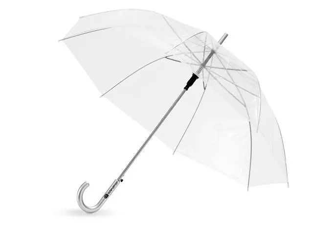 Прозрачный полуавтоматический зонт 23". Зонт 23" с металлическими спицами и тростью и пластиковой ручкой. POE.