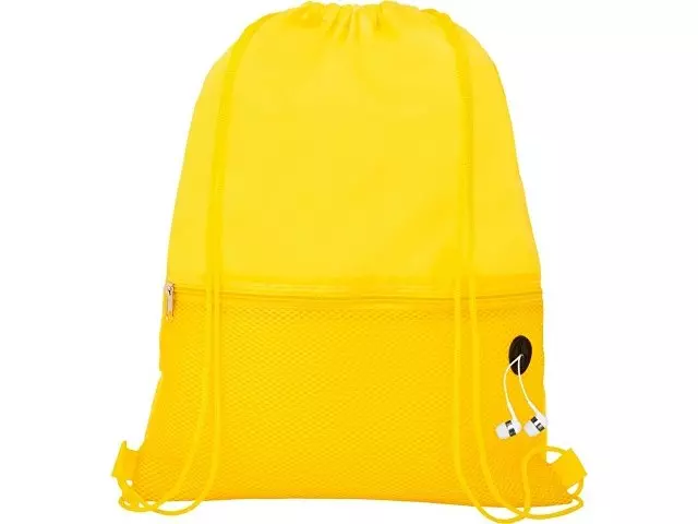 Рюкзак со шнурком и главным отделением на шнуровке в цвет изделия. Имеет один передний сетчатый карман на молнии и порт для наушников. Прочность до 5 кг.