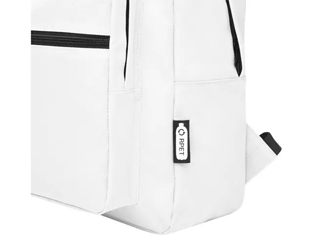 Прочный рюкзак, изготовленный на 100% из переработанного пластика, предназначенного для повторного использования, что способствует уменьшению количества пластиковых отходов. Имеет регулируемые плечевые ремни, 2 отделения на молнии и передний карман на молнии. Для изготовления этой сумки перерабатывается около 15 бутылок.