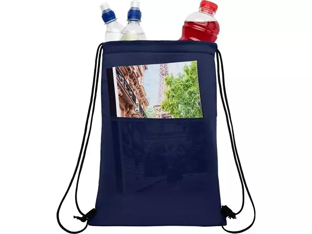 Сумка-холодильник затягивается на шнурок черного цвета. С открытым передним карманом. Вмещает 12 банок. Прочность до 5 кг.