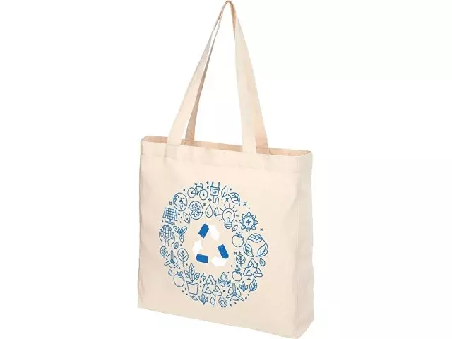 Вторичный хлопок изготавливается из отходов, предназначенных для потребления, которые производятся текстильными фабриками в процессе резки. Сумка-шоппер с клинчиком и большим основным отделением. Имеет две спадающие ручки высотой 31 см. Выдерживает до 10 кг. Реальный цвет продукта может незначительно отличаться в зависимости от особенностей производственного процесса.
