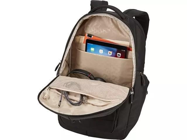 Имеет большое основное отделение на молнии с мягким чехлом для ноутбука 17,3" и планшета 10,1" и сетчатый карман на молнии для кабелей и аксессуаров. Поставляется с передней панелью-органайзером для хранения небольших электронных приборов, кабелей, аксессуаров, визитных карточек и ключей. Имеет расширяемые боковые карманы под бутылку с водой или блок питания, мягкие наплечные ремни, стеганую заднюю панель из сетки, мягкую ручку и рукав для фиксации на выдвижной ручке дорожной сумки. Гарантия от Case Logic: 25 лет.