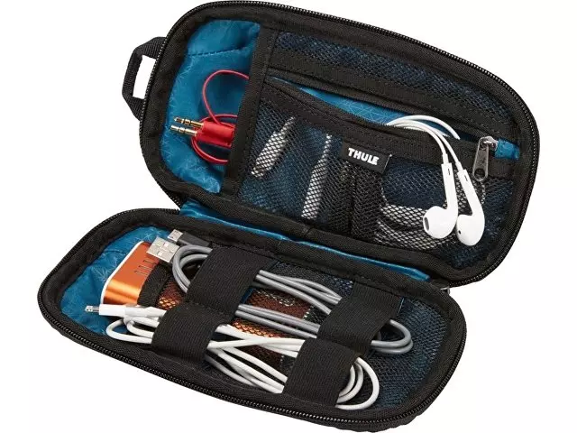 Сумка для аксессуаров с карманами- и петлями-органайзерами. Идеально подходит для кабелей, наушников, адаптеров или других мелких предметов. Удобно размещать в дорожной сумке или рюкзаке, а также в кармашке переднего посадочного места в транспорте, чтобы иметь под рукой компактно собранные небольшие предметы.