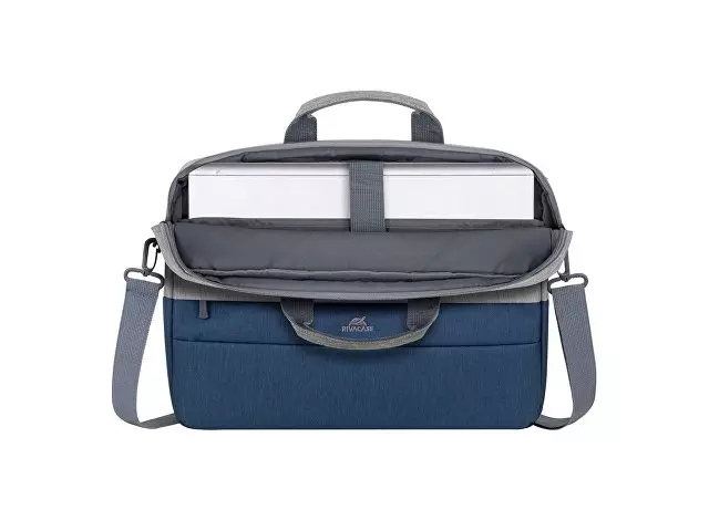 RIVACASE Сумка для ноутбука до 15.6'' Описание: • Сумка для ноутбуков до 15.6" из высококачественной, водоотталкивающей ткани. • Основное отделение с двумя сетчатыми карманами для аксессуаров и 10.1" планшета. Дополнительно имеется отделение для 15.6" ноутбука. • Скрытое переднее отделение на молнии для хранения визитных карт, паспорта, бумажника, смартфона. • Двойная молния для удобного доступа к устройству. • Удобные ручки и регулируемый, съемный плечевой ремень. • Внутренний размер 40 х 28,5 х 5 см.