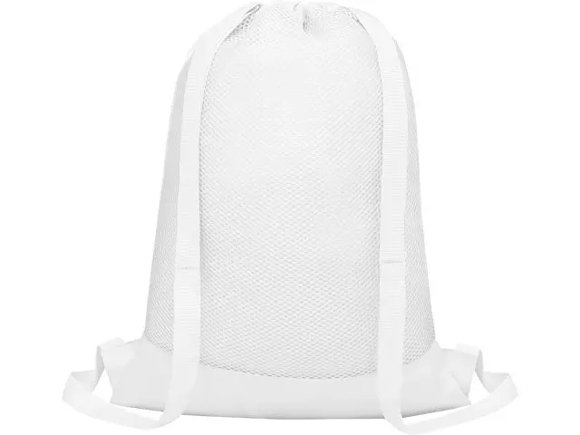 Рюкзак со шнурком и главным отделением на шнуровке в цвет изделия. Имеет большие регулируемые плечевые ремни, изготовлен из полиэстеровой сетки. Прочность до 5 кг.