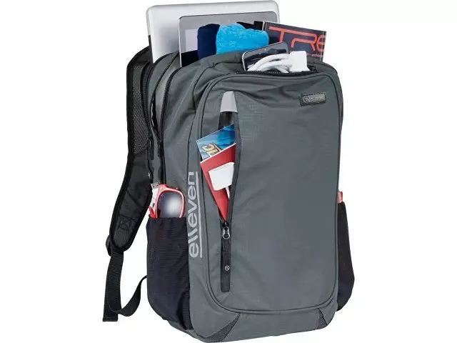 Легкий рюкзак Lunar для ноутбука 15,6". Этот рюкзак значительно облегчает груз без необходимости отказа от нужных вещей. Рюкзак изготовлен из нейлона Dobby с водонепроницаемым покрытием, включая тонкие светоотражающие материалы и светоотражающий логотип Elleven для улучшения видимости ночью. В рюкзаке предусмотрен передний вертикальный карман на молнии с водонепроницаемой застежкой. Большое основное отделение с многослойной передней стенкой и задним карманом для планшета с мягкой подкладкой. Заднее отделение на молнии с мягкой подкладкой для ноутбука 15,6". Удобный легкий рюкзак с легкими сетчатыми и тканевыми ремнями с сетчатой спинкой с мягкой подкладкой. Замшевый ремешок с логотипом на плечевом ремне можно использовать в качестве держателя для очков. На задней панели предусмотрен ремень для тележки. Два вместительных внешних сетчатых кармана для больших бутылок с водой или дополнительных вещей.