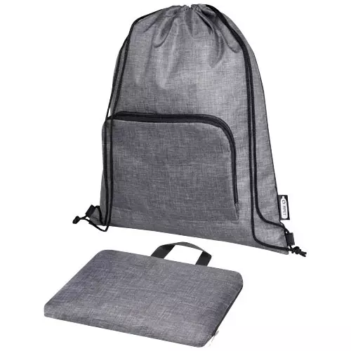 Складная сумка со шнурком Ash из переработанных материалов, соответствующих стандарту GRS, имеет главное отделение с затягивающейся застежкой и передний карман на молнии, в который можно с легкостью сложить сумку для удобности перевозки и хранения.
