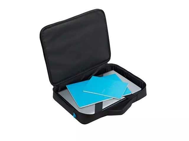 Портфель для ноутбука до 16''. • Портфель выполнен из плотного синтетического материала и имеет утолщенные стенки для лучшей защиты ноутбука от случайных ударов и царапин, а также от пыли и влаги. • Дополнительно имеет усиленную каркасную основу для лучшей защиты ноутбука от случайных ударов. • Портфель имеет одно полностью открывающееся отделение, оборудованное прорезиненной лентой, для надежной фиксации ноутбука. • Внешнее переднее отделение на молнии для хранения аксессуаров, зарядного устройства, документов. • Уплотненная, мягкая ручка и регулируемый по длине плечевой ремень позволяют чувствовать себя комфортно.