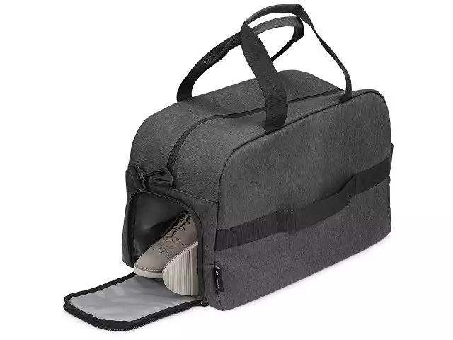 Линейка товаров "District" создана для людей, которые ценят удобство и комфорт в путешествиях. Коллекцию аксессуаров, сумок и рюкзаков отличают минимализм и внимание к деталям. Стильная дорожная сумка District, Voyager – незаменимый помощник в поездках. Лаконичный дизайн модели, выдержанный в темно-серых тонах, делает ее универсальной: аксессуар подойдет и мужчинам, и женщинам. Сумка изготовлена из крепкого, устойчивого к износу материала и рассчитана на длительную эксплуатацию. • Крепкие короткие ручки, удобно лежащие в ладони. • Съемный длинный ремень с регулируемой длиной и с расширяющей накладкой, уберегающей плечо от натирания. • Ремень на задней стороне сумки для надежного крепления аксессуаре на телескопической ручке чемодана на колесиках. • Два внешних боковых кармана для вещей, которые должны быть всегда под рукой. • Несколько внутренних отделений и карман на молнии для удобного размещения массы различных предметов. • Дополнительное отделение для размещения обуви отдельно от других вещей.