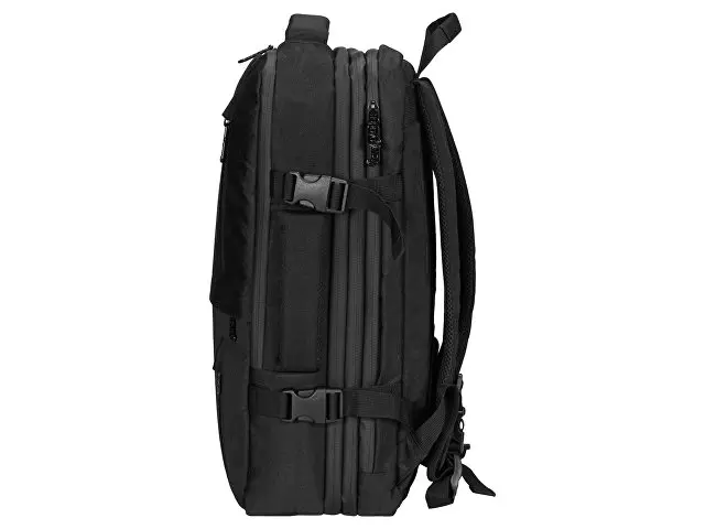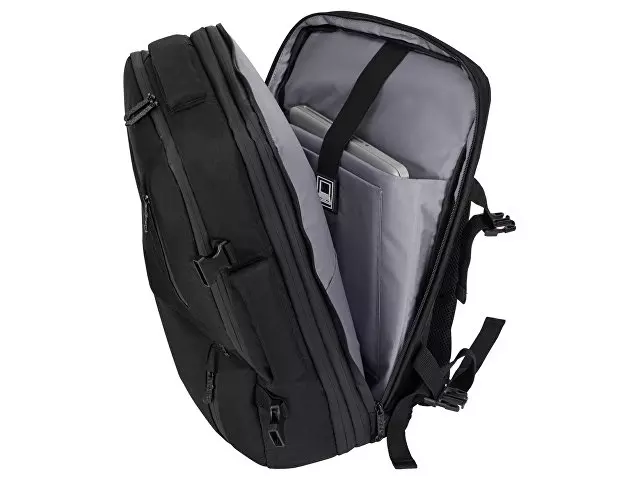 Идеальное решение для деловых поездок и путешествий в любую погоду - поместится все необходимое - от планшета и ноутбука до личных вещей и одежды. С рюкзаком можно ездить в любую погоду, потому что он изготовлен из водостойкого материала и снабжен водонепроницаемыми молниями. С помощью 4-х боковых фиксаторов вместительный рюкзак трансформируется в компактную сумку. Три вместительных отделения, включая: - Органайзер с 3-мя отделениями. - Отделение для одежды с сетчатой крышкой на молнии. - Отделение для планшета и ноутбука 15". Дополнительные характеристики: - 3 кармана на молниях снаружи на фронтальной стороне. - Внешний USB порт для зарядки устройств. - Ремень на спинке для надежного крепления на ручку чемодана. - Эргономичные лямки с регулировкой длины и фиксатором на груди. - Эргономичная спинка из EVA снижает нагрузку на спину. - Вместимость 35 л, максимальная нагрузка 20 кг. - Нетканый мешок для хранения в комплекте.