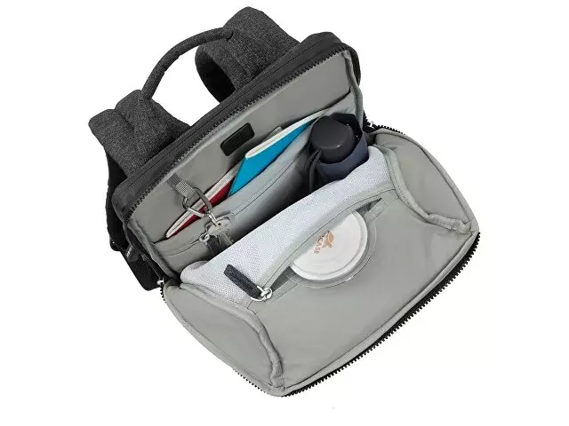 Рюкзак для для MacBook Pro 13" и Ultrabook 13.3". Описание: • Рюкзак для деловых поездок. • Изготовлен из плотной искусственной кожи и полиэстера для защиты ноутбука от случайных ударов и царапин, а также от пыли и влаги. • Отделение для ноутбука защищено водостойкой молнией, имеет мягкие стенки, карман для планшета до 10.1". Дно имеет дополнительную мягкую вкладку для защиты гаджета. • Передний карман на молнии для хранения аксессуаров, зарядного устройства, авторучек, смартфона. • Внутреннее пространство разделено на отделение для документов, два кармана на молнии и карман для воды или зонта. • Удобная мягкая ручка для переноски и наплечные ремни со смягчающими подкладками помогут чувствовать себя комфортно в самом долгом путешествии. • Специальная система крепления ремешков на липучке закрепляет их и создает дополнительное удобство. Размер отделения для ноутбука: 240 x 340 x 20 мм.