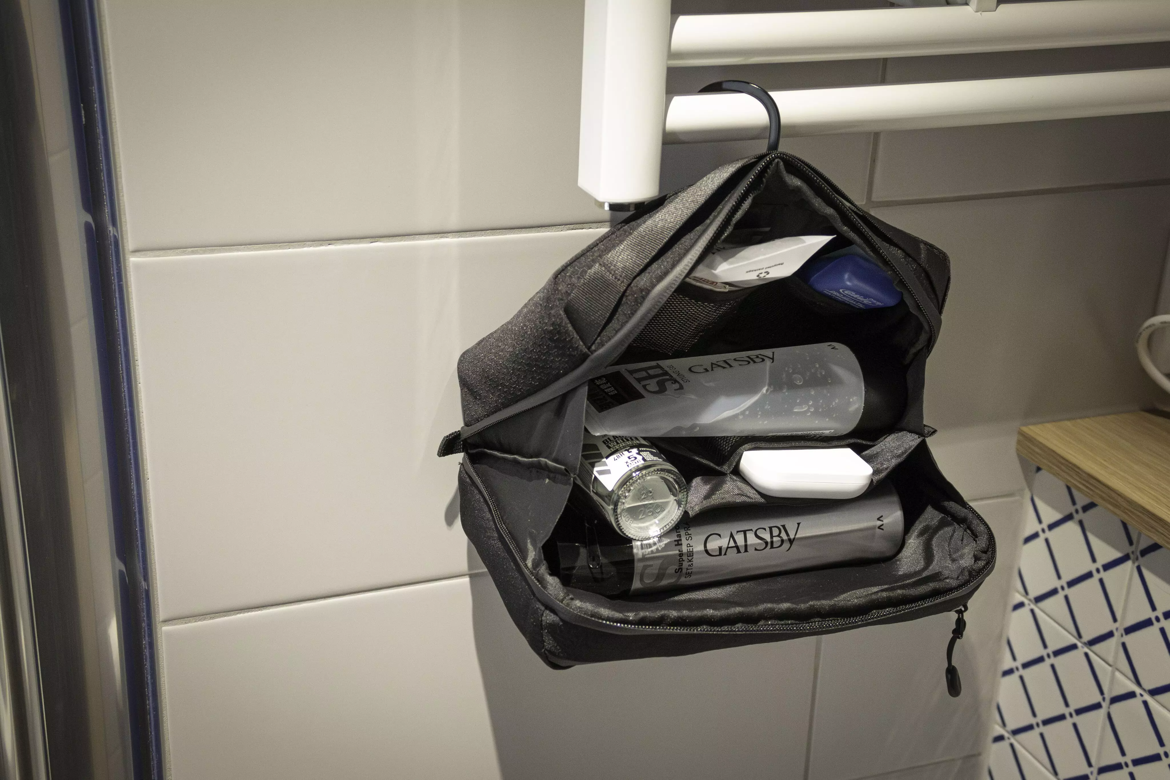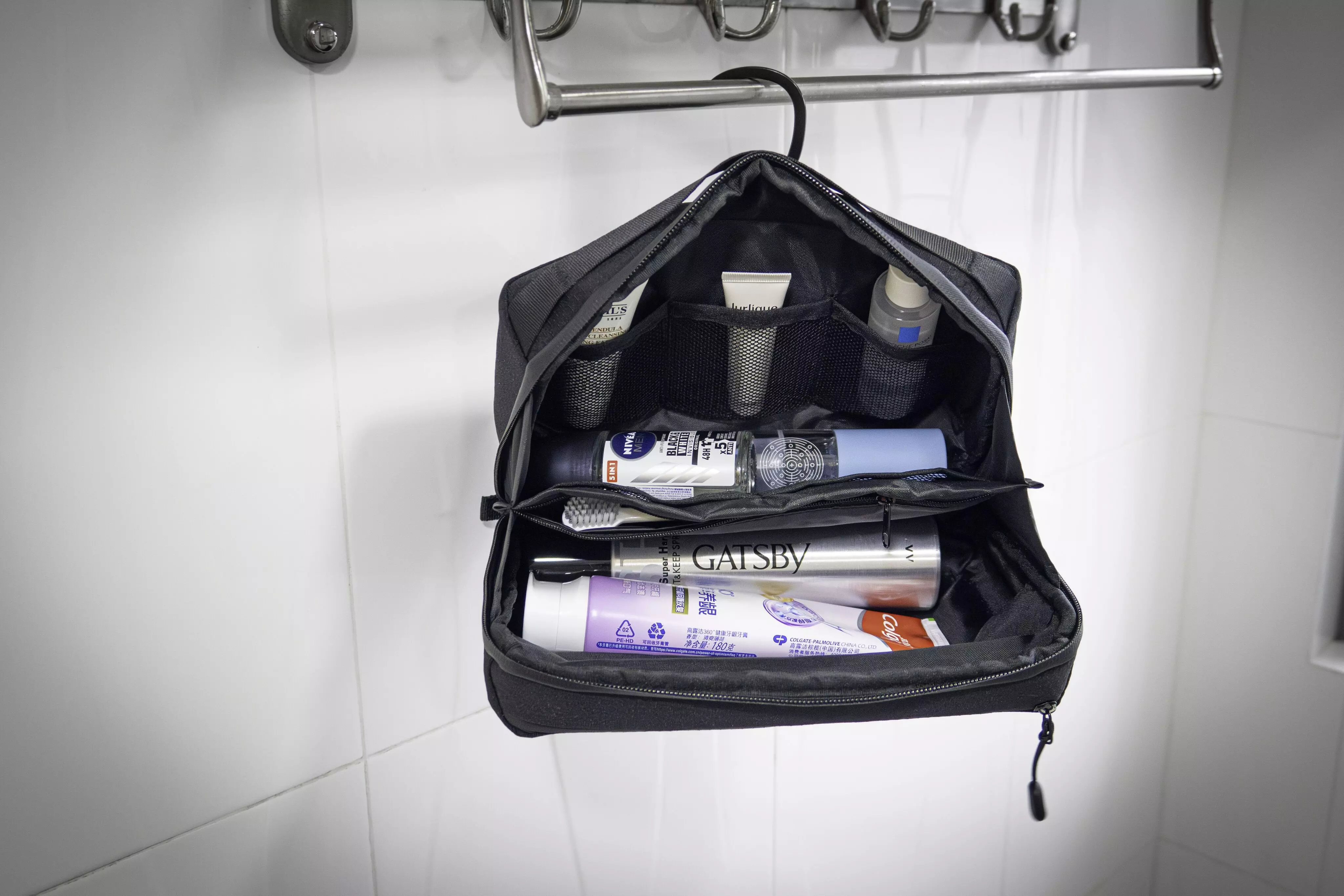 экологичная сумка-органайзер из переработанных пластиковых бутылок. Можно использовать как косметичку, дорожный органайзер или как сумку через плечо (кроссбоди). Прочный полужесткий корпус, водо- и грязеотталкивающая ткань, водонепроницаемые молнии. Много отделений и карманов, включая герметичные, металлический крючок что бы подвесить сумку. Мягкий ремень с четырьмя точками крепления.