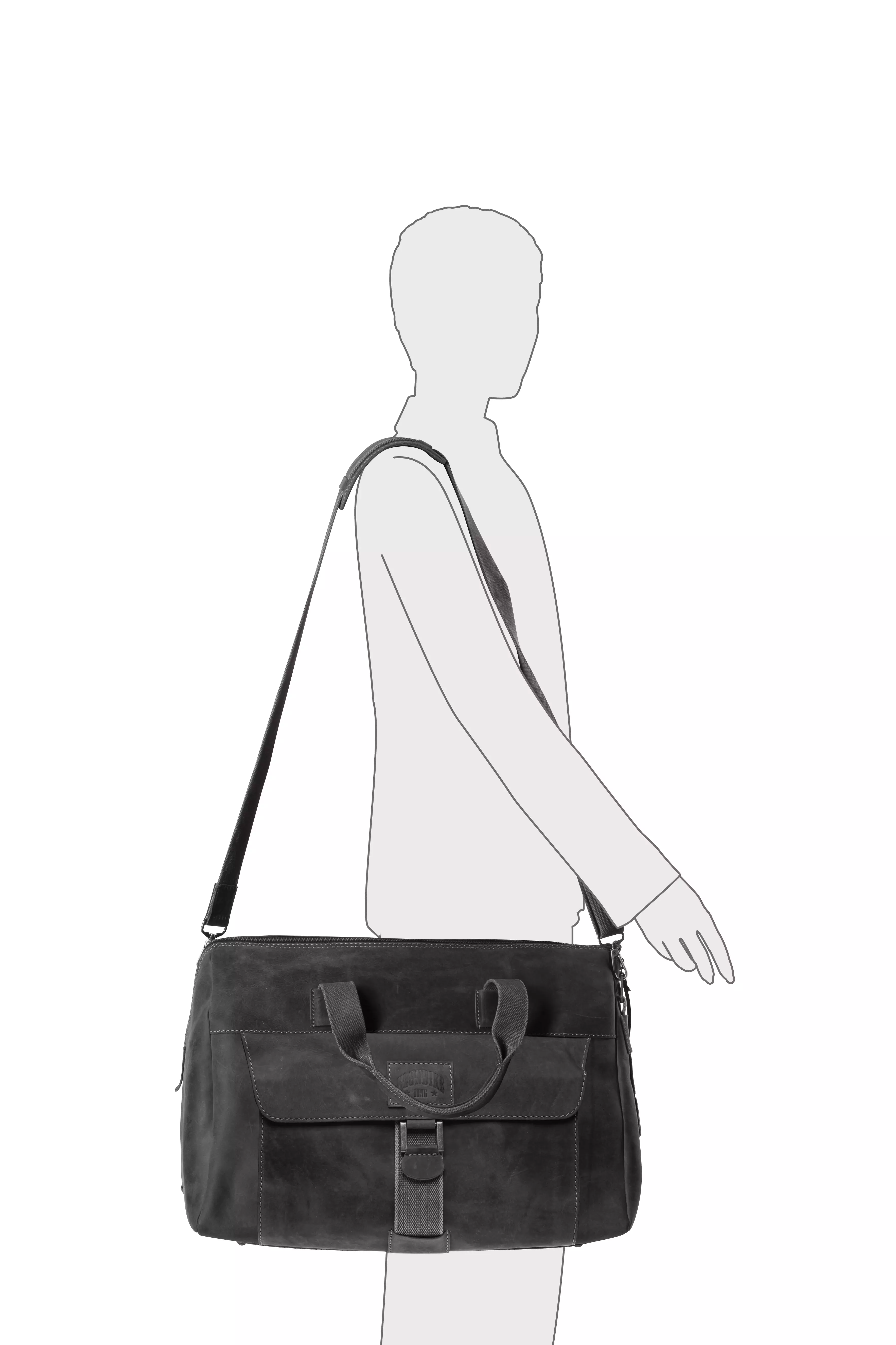 Сумка дорожная KLONDIKE Native, натуральная кожа в черном цвете, 52 х 25 х 35 см
