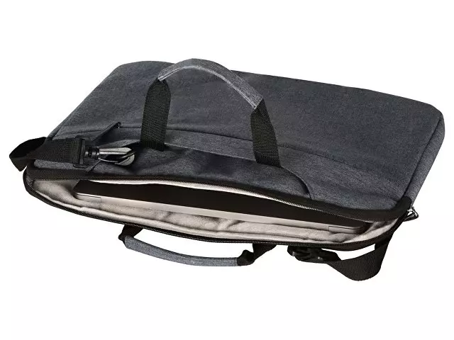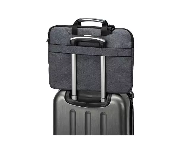 Элегантная сумка для ноутбука 15.6’’. Мягкая прочная велюровая подкладка и утолщенные стенки создают надежную защиту ноутбука от случайных ударов и царапин. Возможность убрать ручки в карманы превращает сумку в папку для документов. · 2 вместительных внешних кармана под ручками · 1 карман на молнии на лицевой стороне с органайзером внутри · отстегивающийся регулируемый ремень на плечо · ремень для фиксации на чемодане.