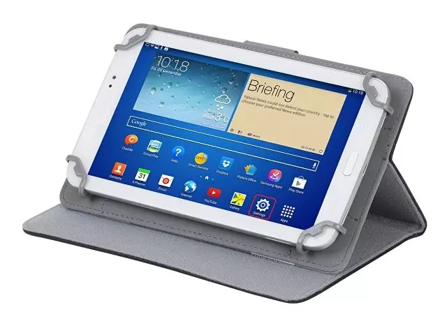 Чехол для планшетов до 7''. • Универсальный чехол для планшетов до 7" (Samsung Galaxy Tab 4 7.0/ Acer Iconia Tab B1-710 / Asus Fonepad Me372CL / Lenovo LePad A2207). • Чехол выполнен с использованием различных материалов: - материал верха - высококачественная искусственная кожа; - внутренний материал контактирующий с тачскрином - микрофибра; - внутренний материал в зоне крепления (под планшетом) - нескользящая дорогая искусственная кожа. • Запатентованная система крепления "4Sure" - универсальные зажимы из гибкого, прочного пластика на высококачественной эластичной ленте. Легко устанавливать и вынимать планшет. • С помощью двух скрытых липучек планшет можно фиксировать под разными углами в режиме просмотра. В закрытом состоянии фиксируется магнитной застежкой. В открытом - застежка крепится к обратной стороне, не мешая работе с планшетом. • Защита от боковых ударов. • Свободный доступ ко всем кнопкам, разъемам и динамикам. Мин. / Макс. внутренний размер (мм): от 106 x 175 / до 125 x 198.