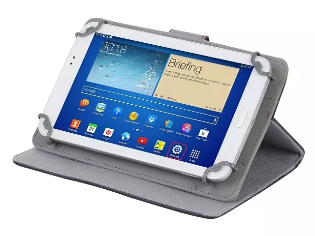 Чехол для планшетов до 7''. • Универсальный чехол для планшетов до 7" (Samsung Galaxy Tab 4 7.0/ Acer Iconia Tab B1-710 / Asus Fonepad Me372CL / Lenovo LePad A2207). • Чехол выполнен с использованием различных материалов: - материал верха - высококачественная искусственная кожа; - внутренний материал контактирующий с тачскрином - микрофибра; - внутренний материал в зоне крепления (под планшетом) - нескользящая дорогая искусственная кожа. • Запатентованная система крепления "4Sure" - универсальные зажимы из гибкого, прочного пластика на высококачественной эластичной ленте. Легко устанавливать и вынимать планшет. • С помощью двух скрытых липучек планшет можно фиксировать под разными углами в режиме просмотра. В закрытом состоянии фиксируется магнитной застежкой. В открытом - застежка крепится к обратной стороне, не мешая работе с планшетом. • Защита от боковых ударов. • Свободный доступ ко всем кнопкам, разъемам и динамикам. Мин. / Макс. внутренний размер (мм): от 106 x 175 / до 125 x 198.