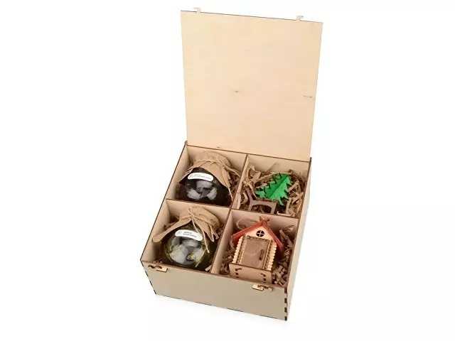 Четырех секционная подарочная коробка из дерева «Legno» - идеальная упаковка для баночек варенья или меда из нашего каталога. На крышке коробки, которая фиксируется деревянными замочками, можно сделать нанесение вашего логотипа или промо информации с пожеланиями. Коробка выполнена из березовой фанеры и послужит отличным дополнением экоподарка.