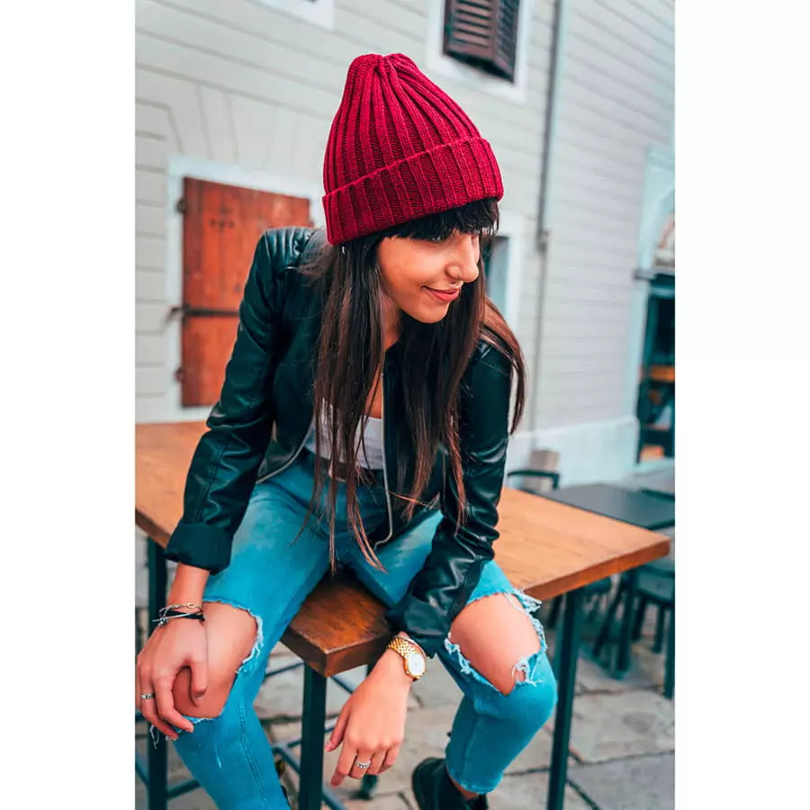 Шапка вязаная "SHORE", с отворотом, бордовый, 50% переработанный полиэстер, 50% акрил