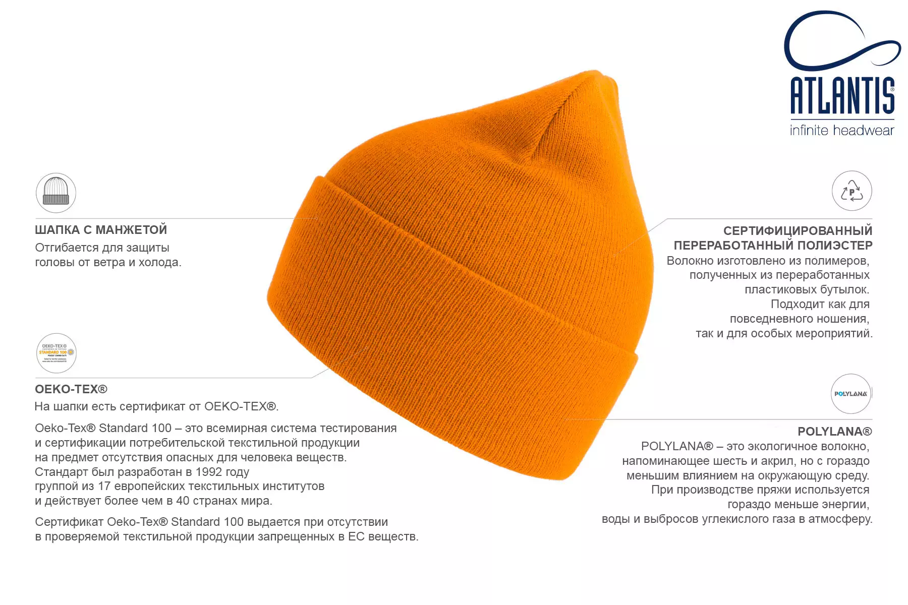 Шапка вязаная "PURE", с отворотом, бордовый меланж, 60% полиэстер, 40% акрил