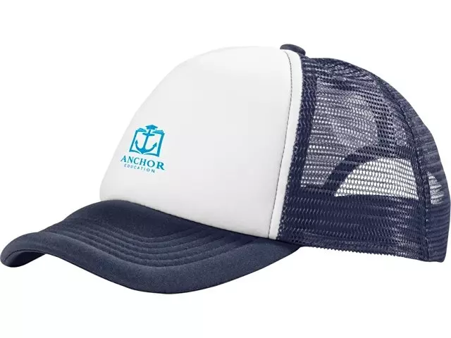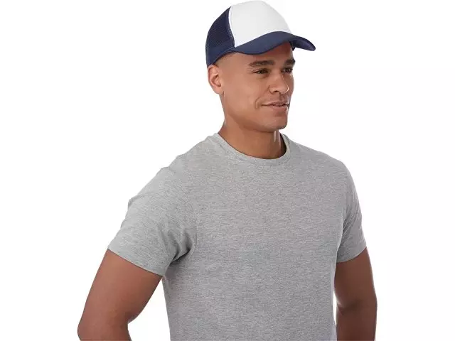 Кепка из 5 панелей Trucker. Оригинальная кепка на окружность головы 58 см с передней поролоновой частью, пластиковой сеткой сзади и пластиковой застежкой. Эта кепка полностью соответствует требованиям к соединениям AZO, формальдегиду и ПХФ. Полиэстер и поролон.