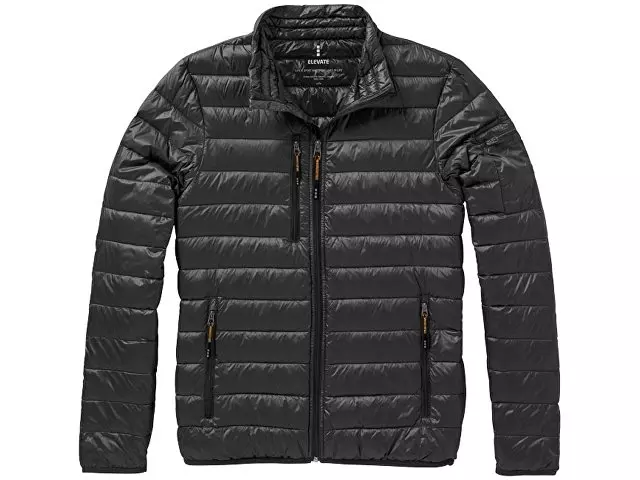 Легкая куртка Scotia. Стандартный покрой. Ткань не пропускает пух. Карманы для рук и нагрудный на молнии. Карман на рукаве на молнии можно использовать для нанесения. Резинка на манжетах и внизу куртки. Ремешки на собачку (второй комплект в цвете антрацит). Внутренний противоветровой клапан и защита подбородка. Ткань дышащая, ветронепроницаемая и влагоотталкивающая. Отражающий лого сзади. Легкий пуховик. Ткань из 100% нейлона с матовым и блестящим водоотталкивающим покрытием, 20D. 80% пух и 20% перо. 115 г/м².