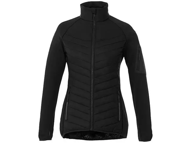 Женская утепленная куртка Banff. Внутренний противоветровой клапан и защита подбородка. Внутренний выход для медиапроводов. Удлиненная задняя часть изделия. Швы моделирующие фигуру и приталенный крой (женская модель).Манжеты-резинки контрастного цвета. Отделка контрастной тканью. Молния с контрастной лентой. Молния легкого скольжения. Петелька-вешалка. Комфортный ярлык-трансфер на изделии. 100% нейлоновая тканая матовая отделка 380T, водоотталкивающая и пухонепроницаемая ткань. Контрастная ткань: 94% полиэстер, 6% эластан с водоотталкивающей поверхностью. 38 г/м².
