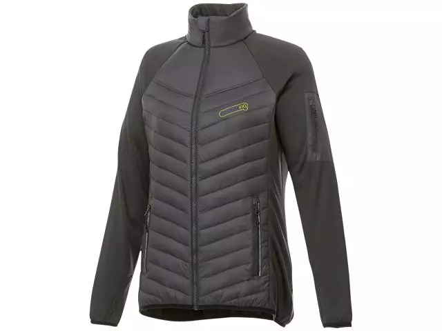 Женская утепленная куртка Banff. Внутренний противоветровой клапан и защита подбородка. Внутренний выход для медиапроводов. Удлиненная задняя часть изделия. Швы моделирующие фигуру и приталенный крой (женская модель).Манжеты-резинки контрастного цвета. Отделка контрастной тканью. Молния с контрастной лентой. Молния легкого скольжения. Петелька-вешалка. Комфортный ярлык-трансфер на изделии. 100% нейлоновая тканая матовая отделка 380T, водоотталкивающая и пухонепроницаемая ткань. Контрастная ткань: 94% полиэстер, 6% эластан с водоотталкивающей поверхностью. 38 г/м².