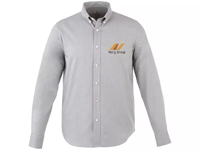 Рубашка с длинными рукавами Vaillant. Стандартный покрой. Белые пуговицы с гравировкой Elevate. Вторая петелька для пуговицы внизу с оранжевой строчкой. Манжеты с двумя пуговицами для регулирования размера. Рукав с разрезом на пуговицах. Принт лого сзади в тон изделия. Сатиновая вставка внутри горловины. Мужская модель с пуговицами на воротнике. Оксфорд, 100% хлопок. 40x32/2, 110x50.