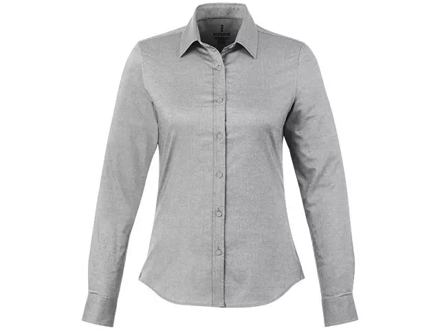Женская рубашка с длинными рукавами Vaillant. Стандартный покрой. Белые пуговицы с гравировкой Elevate. Вторая петелька для пуговицы внизу с оранжевой строчкой. Манжеты с двумя пуговицами для регулирования размера. Рукав с разрезом на пуговицах. Принт лого сзади в тон изделия. Сатиновая вставка внутри горловины. Оксфорд, 100% хлопок. 40x32/2, 110x50.