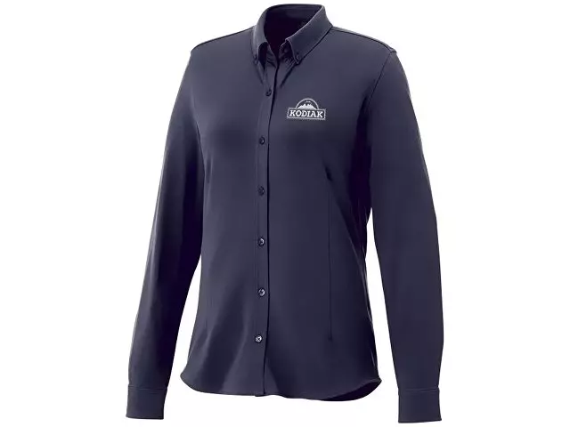 Женская рубашка Bigelow из пике с длинным рукавом. Воротник из ткани изделия. Стрейтч-ткань. Регулируемый манжет на одной пуговице. Воротник на пуговицах. Швы моделирующие фигуру и приталенный крой. Атласная окантовка внутренней части горловины. Гравированные пуговицы в цвет изделия. Тканая метка. Двойное трикотажное пике, 95% хлопок и 5% эластан. 200 г/м².
