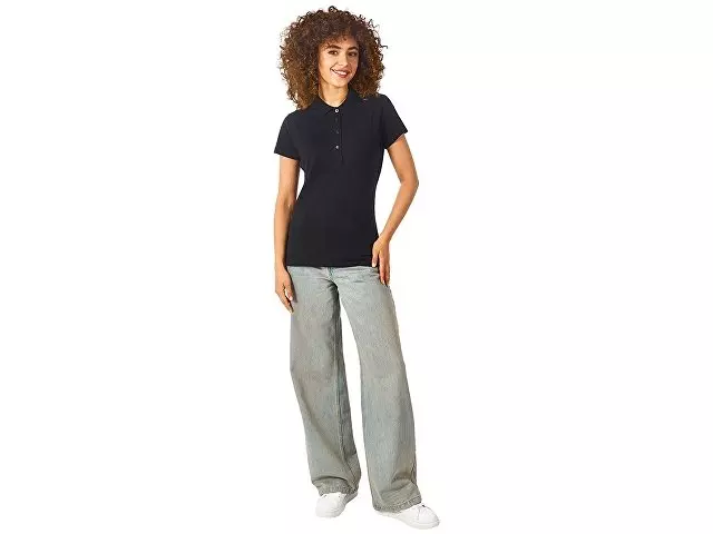 Женская рубашка-поло First. Воротник 1х1. Обшивка внутри воротника. Мужская и детская модели с 2 пуговицами, женская - с 4 пуговицами. Пуговицы с гравировкой в тон. Пике, 100% хлопок. 160 г/м2. Данная модель на 1 размер больше модели женского поло First.