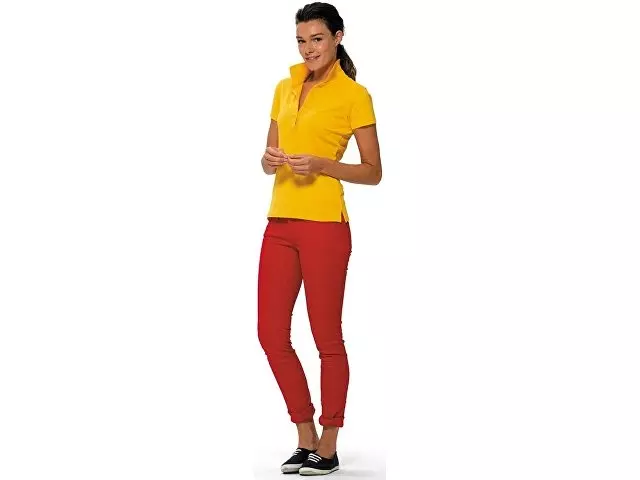 Женская рубашка-поло First. Воротник 1х1. Обшивка внутри воротника. Мужская и детская модели с 2 пуговицами, женская - с 4 пуговицами. Пуговицы с гравировкой в тон. Пике, 100% хлопок. 160 г/м2.