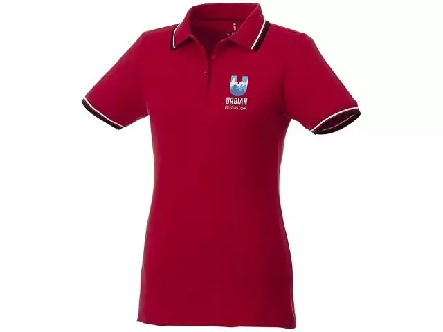 Женская футболка поло Fairfield с коротким рукавом с проклейкой. Воротник гладкой вязкой в рубчик. Манжеты гладкой вязкой в рубчик. Контрастные окантовки. Планка с тремя пуговицами (мужская модель).Гравированные пуговицы в цвет изделия. Комфортный ярлык-трансфер на изделии. Трикотажное пике, 100% хлопок. 180 г/м².