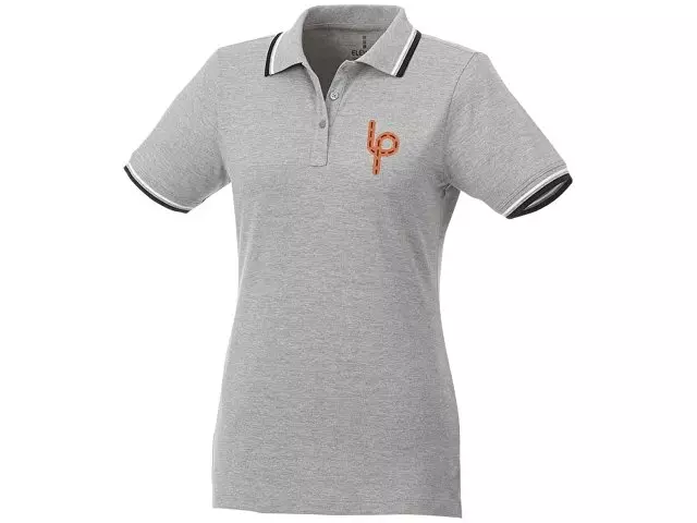 Женская футболка поло Fairfield с коротким рукавом с проклейкой. Воротник гладкой вязкой в рубчик. Манжеты гладкой вязкой в рубчик. Контрастные окантовки. Планка с тремя пуговицами (мужская модель).Гравированные пуговицы в цвет изделия. Комфортный ярлык-трансфер на изделии. Трикотажное пике, 90% хлопок, 10% вискоза. 180 г/м².