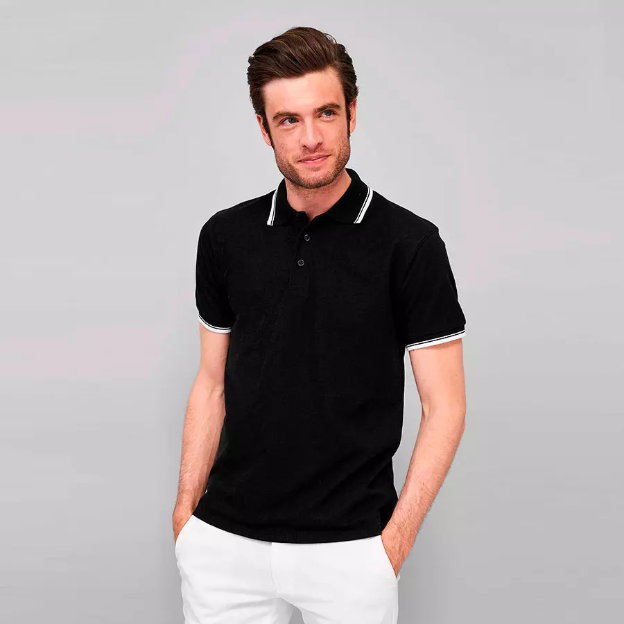 Поло "Practice" белый с темно-синим_S, 100% х/б, 270г/м2