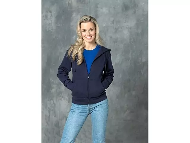 Женская толстовка на молнии Theron. Возможность индивидуального брендинга. Основная этикетка, которую можно оторвать или отрезать, без неудобных пришитых ярлыков. Завязки на капюшоне. Расположенная по центру молния. Карман «кенгуру». С подшивкой из гладкого трикотажа в рубчик. С манжетами из гладкого трикотажа в рубчик. Внутренняя сторона покрыта ворсом. Самоклеющаяся лента на воротнике. Придающие форму швы и зауженная талия для ровного прилегания. Трикотаж 50% Хлопок, 50% Полиэстер, 240 g/m2.