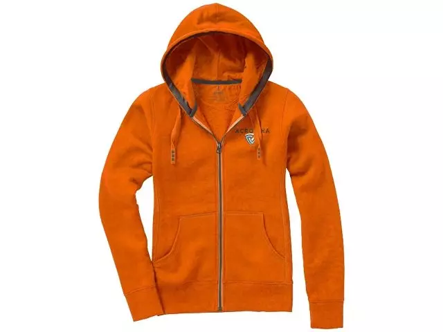 Женский свитер Arora с капюшоном и застежкой-молнией на всю длину. Стандартный покрой. Резинка 2х2 на боковых вставках, поясе и манжетах. Карман кенгуру. Мужская и женская модели с завязками на капюшоне. Подкладка внутри капюшона. Атласная лента внутри горловины. Принт лого сзади в тон изделия. Серебристые люверсы с лого. Ворсистый внутри для мягкости, тепла и комфорта. Трикотаж: 80% хлопок и 20% полиэстер, чесаная внутренняя сторона. 300 г/м².