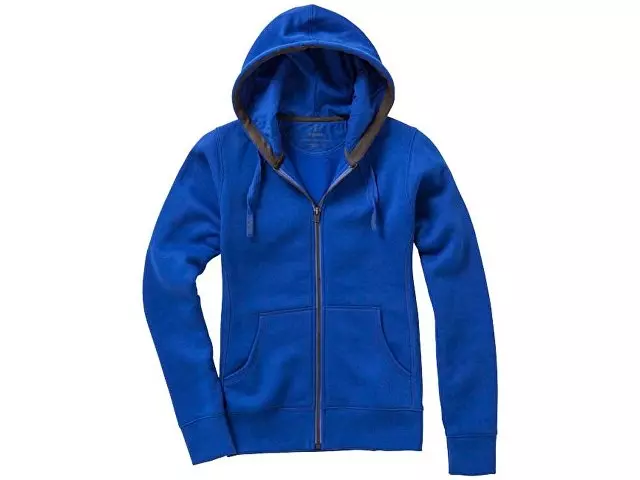 Женский свитер Arora с капюшоном и застежкой-молнией на всю длину. Стандартный покрой. Резинка 2х2 на боковых вставках, поясе и манжетах. Карман кенгуру. Мужская и женская модели с завязками на капюшоне. Подкладка внутри капюшона. Атласная лента внутри горловины. Принт лого сзади в тон изделия. Серебристые люверсы с лого. Ворсистый внутри для мягкости, тепла и комфорта. Трикотаж: 80% хлопок и 20% полиэстер, чесаная внутренняя сторона. 300 г/м².